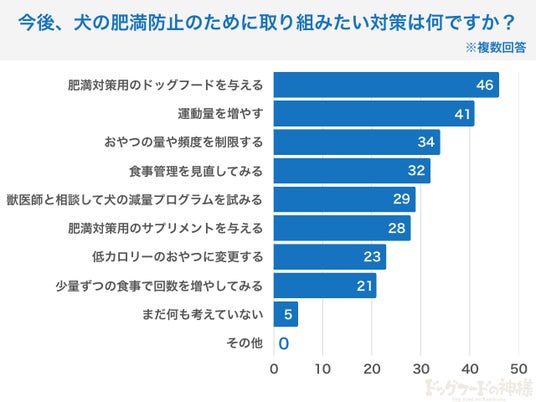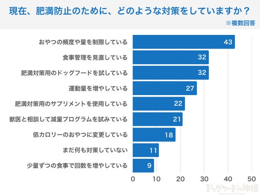 特に「おやつの量を制限する」という声が最も多く、次いで「食事管理の見直し」や「肥満対策用フード」が挙がりました。