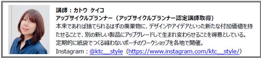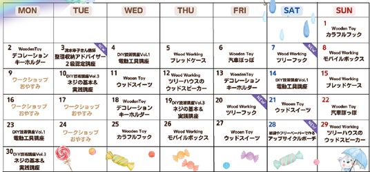 アップサイクルポーチ以外にも、6月は、整理収納アドバイザー清水幸子さんを講師にお迎えし、「整理収納アドバイザー2級」の資格が取得できる講座やお子さま向けの玩具など、新しいワークショップが登場します。