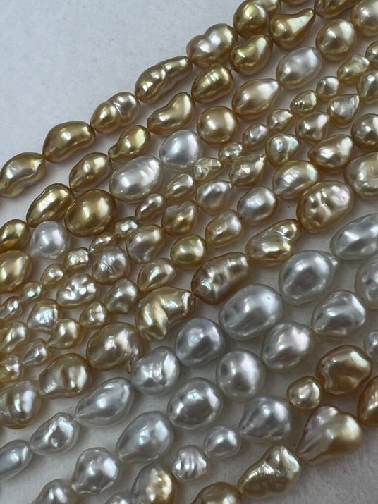 一般的に真珠は養殖時に貝の中に球状の<核>を入れ、その核に真珠層が巻き付き丸い真珠になります。