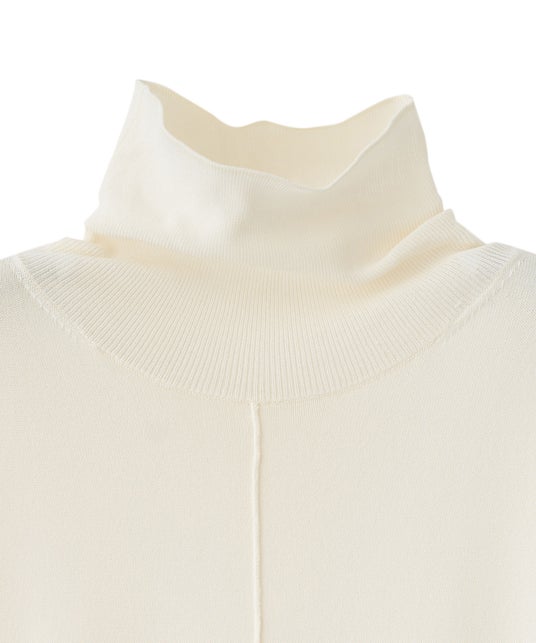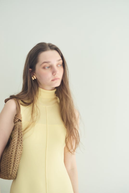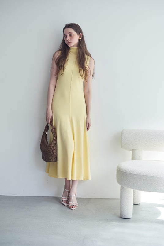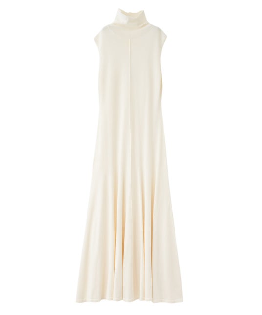 切り替えがなく、編み続きでなめらかにきれいなシルエットを表現したニットワンピース。