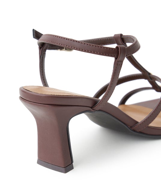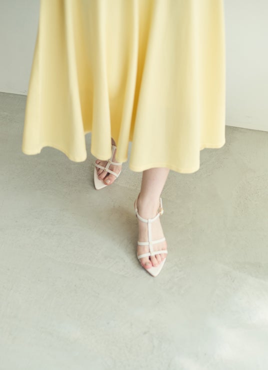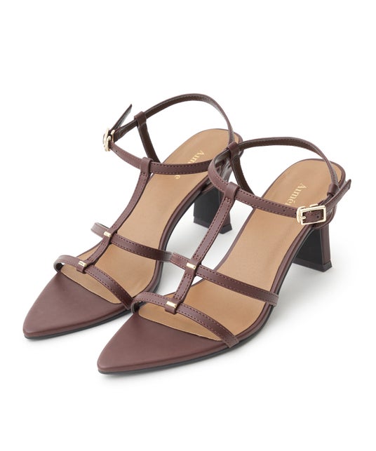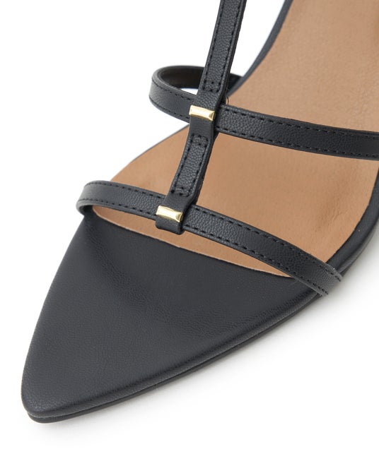 細めのストラップが女性らしさを演出し、シャープなポインテッドトゥが洗練された印象に。