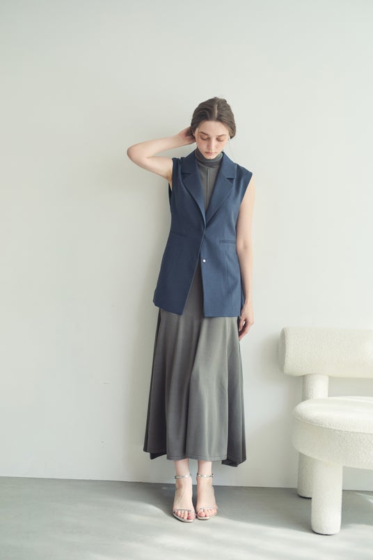 ストンとした形の中にも、ウエストと膝付近は細めに作り、女性らしいシルエットに。