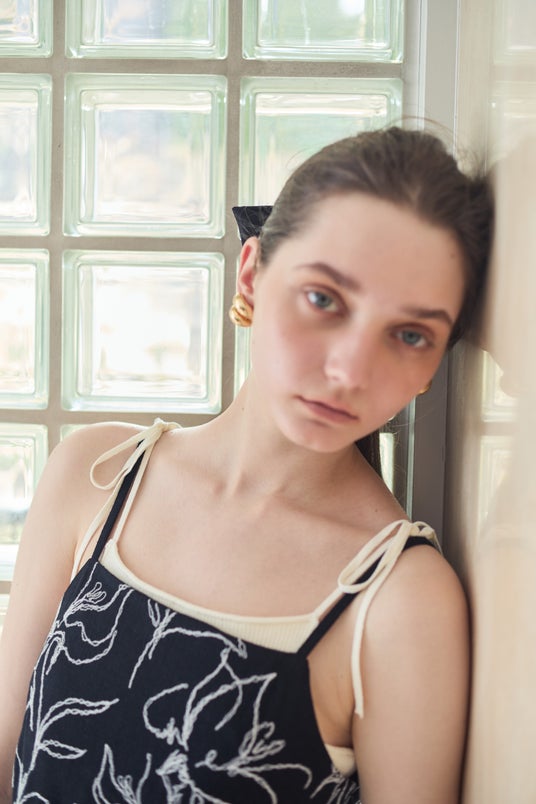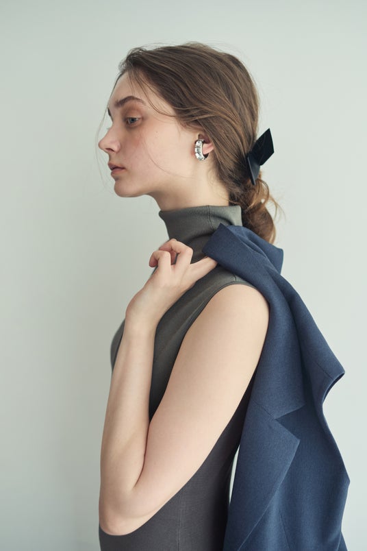 スクエアネックのデザインが、デコルテラインを美しく見せてくれます。