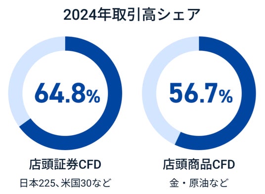 2024年には新たに「鉄鉱石」や「牛肉」「豚肉」の商品CFDをはじめ、米国個別株を参照原資産とする株式CFD、株式指数CFDの銘柄を追加し、投資の選択肢の拡充を図りました。その結果、2024年度のCFD国内取引高シェアは、店頭証券CFDが64.8%、店頭商品CFDが56.7%となり、11年連続でシェアNo.1を達成することができました。これはひとえに当社CFD取引サービスを選んでくださったお客様のおかげであると心より感謝申し上げます。