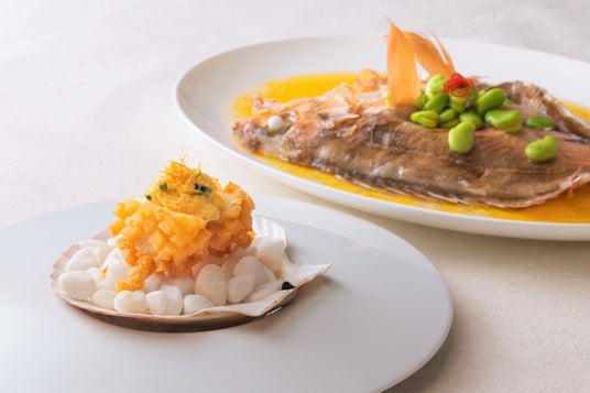 コースでは、「津軽海峡メバル」の繊細な旨みを引き立てた香り蒸し、郷土料理 “貝焼き味噌”に着想を得た帆立の一皿、旬の蟹や青森県産の牛肉、季節野菜をふんだんに用いた料理など、伝統的な中国料理の技法と現地食文化への敬意が融合した珠玉の逸品を取り揃えます。