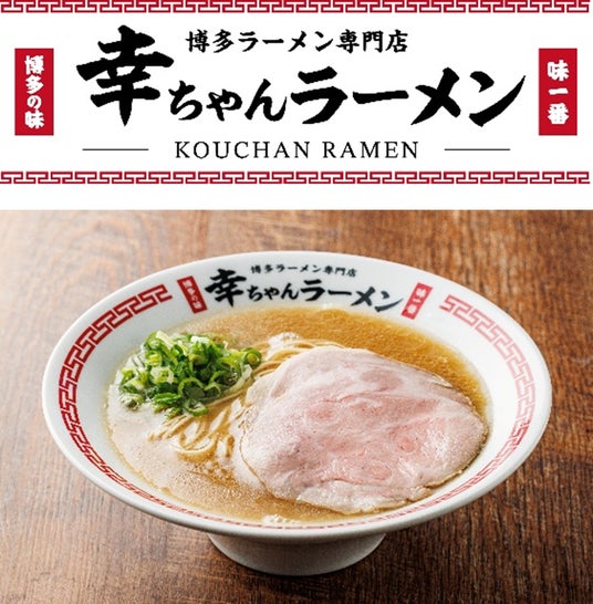 博多ラーメン専門店 幸ちゃんラーメン(こうちゃん)は、本場博多はもとより国内外10カ国で愛されている元祖泡系豚⾻ラーメン『博多一幸舎』がプロデュースする、豚⾻ラーメンブランドです2025年3月現在、国内に20店、海外2店舗を展開し、看板商品の「博多豚⾻ラーメン」は、試行錯誤の後、しっかりと豚⾻の旨味(パンチ)と、ほんのり感じる⽢みがクセになるスープが特徴の豚⾻ラーメンとして完成しました。そして、麺は幸ちゃんラーメンの為だけに特別配合したこだわりの小⻨粉を使用。幸ちゃんラーメンオリジナルの豚⾻スープに合うよう、特注の細麺を使用しています。小⻨本来の香りが豊かに広がり、もっちり感と、しなやかなコシを楽しめ、パツッとした食感がついつい替⽟を注文したくなるほどクセになります。こだわりの、しっとりとした特製大判チャーシュー、シャキシャキの⻘ネギと食べ進めていただくことで、本場博多の町豚⾻を感じていただけます。そんな幸ちゃんラーメンは、お子様からご年配の方、⽼若男女問わず幅広い方達より「早い、美味い、また来たい!」本場博多の町豚⾻として支持いただいてます。