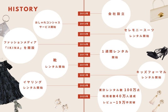 2012年の創業以来、「すべての女性に着飾るよろこびを」という理念のもと、高品質なレンタルサービスを提供し続けた結果、現在では: