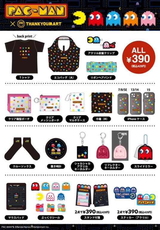 世界一有名なゲームキャラクターのひとりである「パックマン」の発売45周年を記念したコラボレーション雑貨がサンキューマートに新登場!ALL390円(税込429円)で6月中旬より発売予定