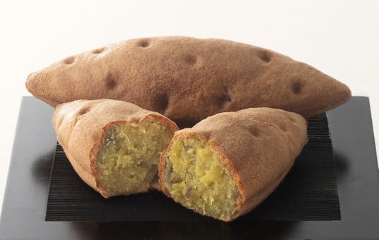 糖度や水分量の高さから「蜜芋」と呼ばれるさつま芋がありますが、その「蜜芋」のひとつである大分県産さつま芋「べにはるか」は、しっとりとしたクリーミーな食感と、焼成時に糖度35度前後にまで高まる甘さが特徴です。「スイーツ芋の王様」と称されるその「べにはるか」をひとつひとつ丁寧に洗い、蒸し、さらに焼き上げて糖度を最大限引き出してから餡に仕立て、バターや卵黄でクリーミーさをプラス。この餡を特製の生地で包み、焼き芋そっくりの形に仕上げました。本物そっくりの独自の焼き芋型フォルム、口の中でとろける食感が特徴の焼き芋スイーツです。