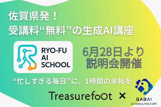 株式会社トレジャーフット(本社:神奈川県鎌倉市、九州支店:佐賀県佐賀市)は、がばいAIコンサルティング株式会社と共同で生成AI活用講座「 RYO-FU AI SCHOOL 」を受託いたしました。