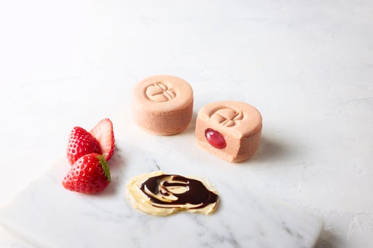 ほんのりピンクに色づいたバタークリームには、ベルギー産のカカオ99%のチョコレートとベルギー産発酵バターを使っています。サクッと軽い口当たりのサブレと、甘酸っぱいイチゴのフィリングは、なめらかなバタークリームとの相性抜群です。