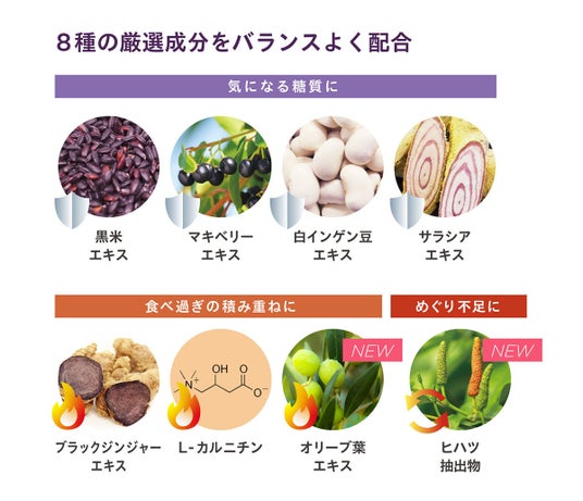 気になる食事の糖質や余分な蓄積にアプローチ。
