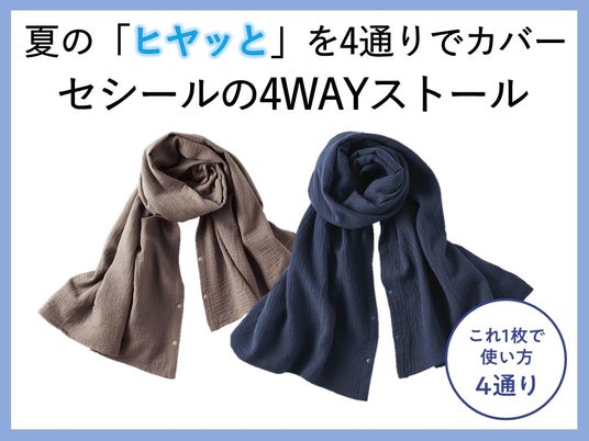 株式会社セシール(本社:東京都新宿区)は、4月25日から「ボレロにもなる!ぽこぽこガーゼのストール」を販売開始しました。冷房は夏の必需品であるものの、効きすぎによる冷えに悩まされる方も少なくありません。夏の体温調節に役立つアイテムとして生まれたセシールの4WAYストール、是非お試しください。
