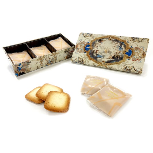フィーカファブリ―ケンのロゴと本展の出品作品をあしらったオリジナル缶に、人気の紅茶のサブレをはじめとした焼き菓子を詰め合わせて販売します。