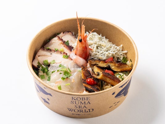 また、ブルーオーシャン オルカスタディアムには「紅白握り鮨」や記念ドリンクが登場するほか、ワーフ ドルフィンスタディアムでは兵庫県の海の幸を使用した「1周年海鮮丼」など特別メニューをご提供いたします。さらに、館内ショップでは1周年の感謝を込めて「1周年サンキューバッグ」や、「1周年記念切手(ポストカード付)」を販売いたします。