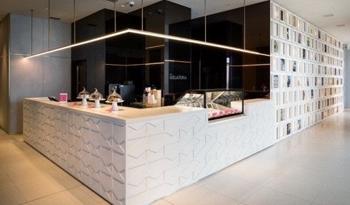 <JAM17 GELATERIA>フレッシュな素材の美味しさをそのままに、彩り鮮やかで上質なジェラートをエシカルに楽しめるジェラートショップ。副都心の摩天楼を望むまちの社交場の入口に賑わう憩いの空間をご用意します。