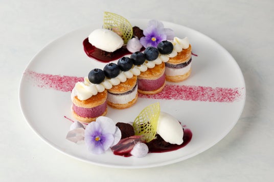 クリームチーズを合わせ、ブルーベリーの甘さをさらに引き立てたミルフィーユです。7周年を記念したおすすめデザートです。