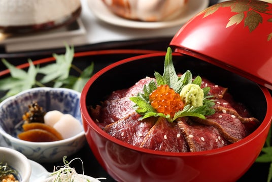 滋賀県が誇るブランド牛「近江牛」を、大津市の味噌「九重味噌」を使用した甘辛いタレで調味し、滋賀県産の棚田米と合わせた一杯。作り手の「食で滋賀を満喫して欲しい」という思いが詰まっています。どんぶりの〆は、日本五大銘茶の一つともいわれる朝宮茶を出汁に仕立て、お茶漬けに。さらさらと掻き込める夏でも食欲そそる一膳です。
