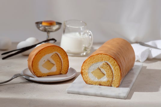 和三盆のやさしい甘みが広がる、うるち米を使用したふんわりもちもちの生地。中には生クリームとともに、深いコクと甘みの御用卵プリンを閉じ込めて、しっとりと焼き上げています。