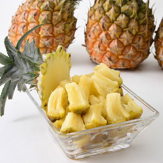 【内容】ボゴールパインという品種で、ひと節ごと手でちぎってスナック菓子のように食べられるスナックパインです。豊かな香りと甘みが強く酸味が少ないのが特長です。