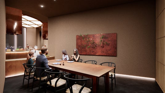 空間のコンセプトは「伝統を受け継ぐ」。「BUTAI」では、伝統的な日本家屋で継承されてきた、空間を障子や襖などの建具などで仕切る「間仕切りの文化」を継承し、湾曲した特徴的な戸で個室を仕切り、伝統とモダンが融合した空間をつくります。また、壁面には京都で生まれ、古くから茶室や歴史的建造物などに使われてきた聚楽壁風に仕上げ、「BUTAI」の持つ和の趣や静かで落ち着いた風情といった特徴で空間全体を包みます。