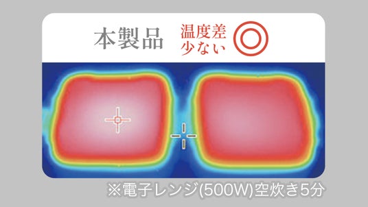 マイクロ波を受けた発熱シリコーン自体が熱源となるため、極めて均一な温度になります。熱ムラが少ないので手軽にオーブントースターで焼いたような調理ができます。