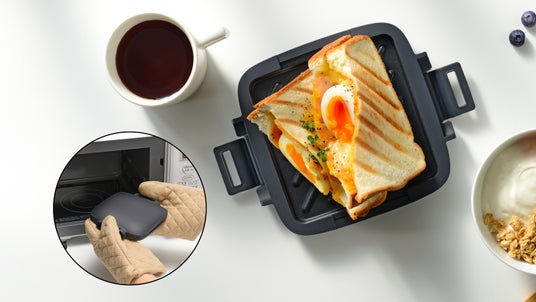 オーブントースターやフライパンは必要ありません。火を使わずホットサンド以外にも、おつまみやスイーツも作れます。一口コンロでもレンジと作業分担できます。