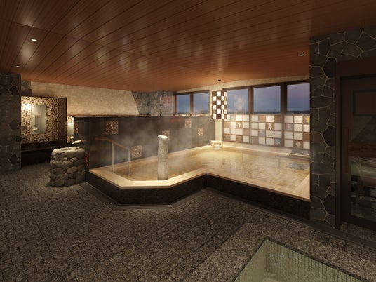 ・最上階には天然温泉大浴場や露天風呂をはじめ、高温ドライサウナ(オートロウリュ)、