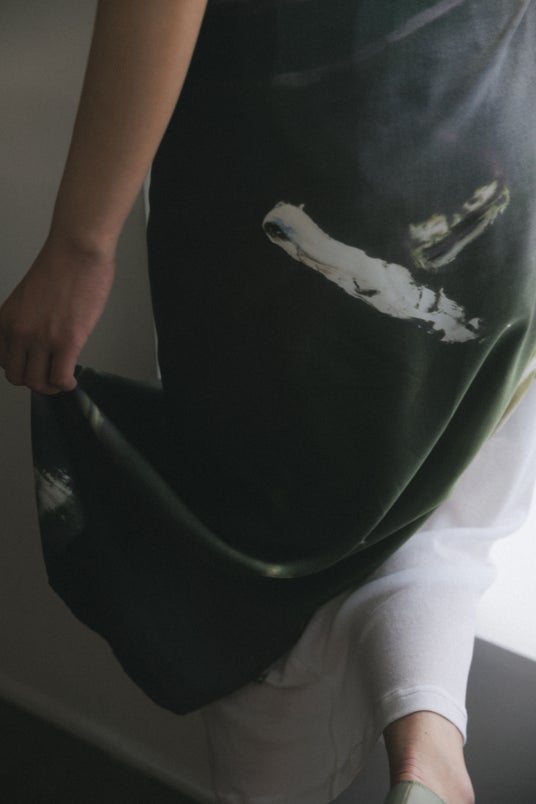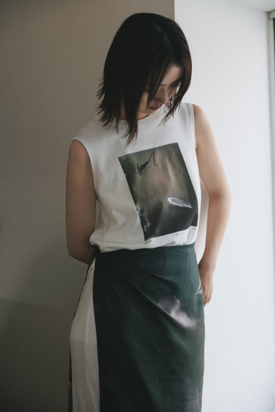 本コラボレーションでは、平野氏による作品「Superposition 2009」、「To hold aloft」、「Fragments 2407」をモチーフにしたリラックスTシャツ、コンパクトTシャツ、ノースリーブTシャツと、「Fragments 2401」、「Whisper 2401」をモチーフにしたスカーフの全4型を展開。アートとファッションの融合を通じて、着る人の感情や記憶に寄り添い、静かな情緒を纏うコレクションです。