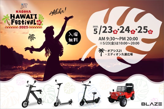 【ハワイフェス】電動モビリティメーカー(株)ブレイズが、「JST Nagoya HAWAI'I FESTIVAL 2025」に出展します!