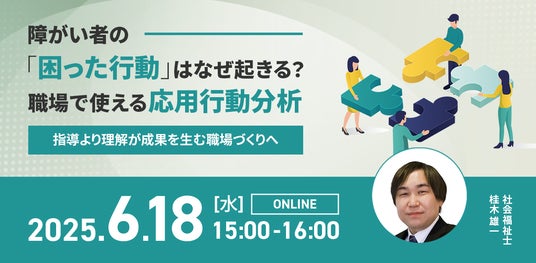 株式会社アイエスエフネットジョイ(本社:東京都新宿区、代表取締役:渡邉幸義、以下アイエスエフネットジョイ)は、2025年6月18日(水)の日程にて障がい者雇用セミナー「障がい者の「困った行動」はなぜ起きる?職場で使える応用行動分析 ~「指導」より「理解」が成果を生む職場づくりへ~」を開催いたします。
