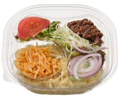 スパイスの風味豊かで酸味の効いたスープと、しなやかな食感の平打ち麺は相性抜群で、後を引くようなクセになるおいしさを実現しています。また、具材として肉味噌、もやしのラー油和え、トマト、サニーレタス、長ねぎ、紫玉ねぎを盛りつけており、彩り良く仕上げました。