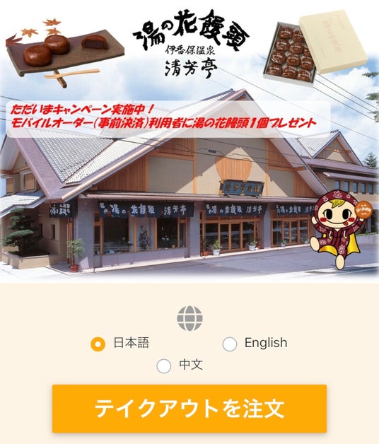 伊香保温泉・清芳亭は、「湯の花饅頭」×「モバイルオーダー」×「マスコットキャラ『ゆのまる』」で地域活性化、地域の魅力を発信し、『温泉文化』の世界無形文化遺産登録を応援しています。