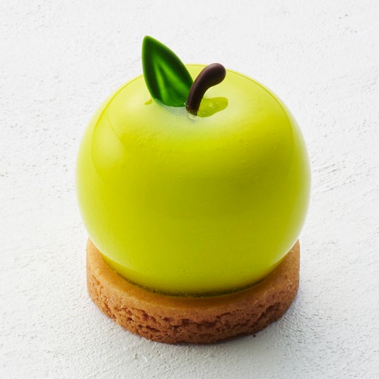 青林檎のソースとアールグレイムースを、ホワイトチョコムースで包みました。青林檎の香りがほのかに香る上品な味わい。