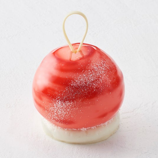 夏の縁日に並ぶカラフルな水風船をイメージしたケーキ。ベルガモット香るホワイトチョコムースで、ライチソース、グァバジュレを包みました。メレンゲをアクセントに。