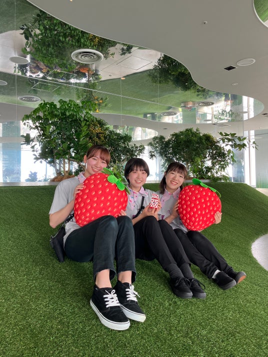 芝生の緑に、赤いイチゴが映える写真を撮影いただけます。