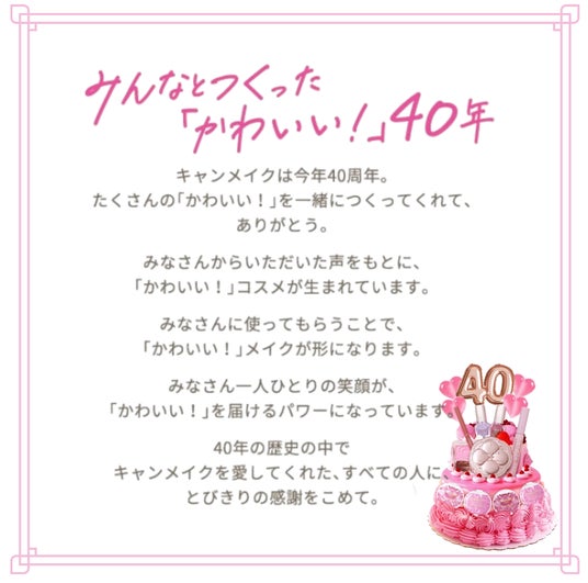 - テーマは『みんなとつくった「かわいい!」40年』とびきりの感謝をこめて、スペシャル企画を展開中!
