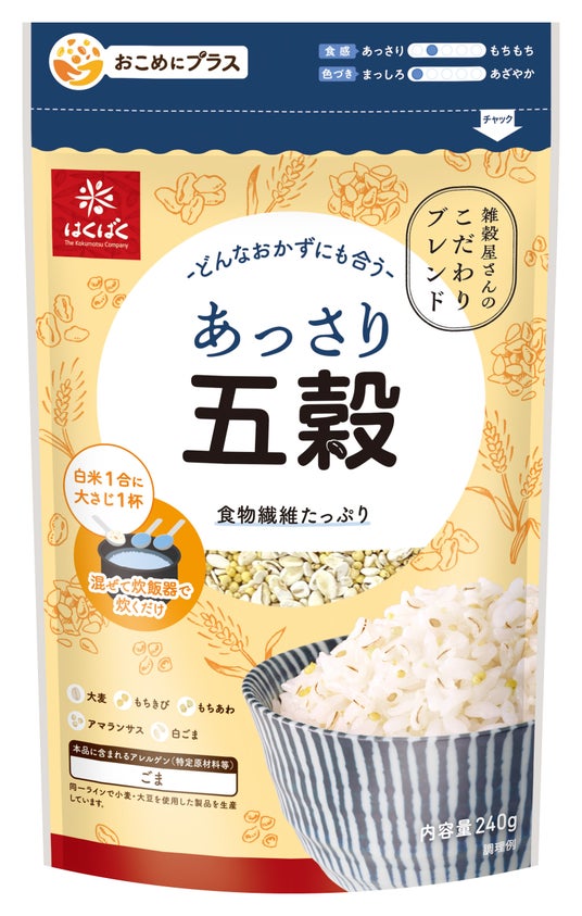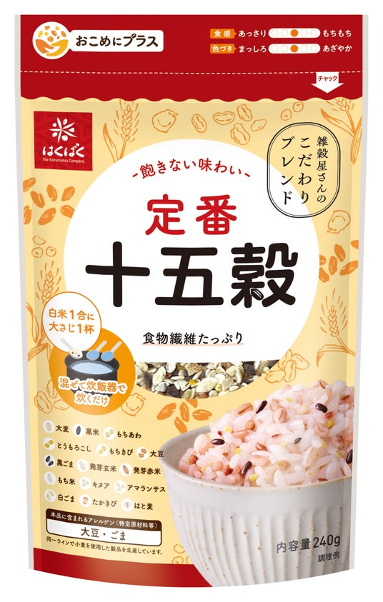 『主食改革』を提唱する穀物のリーディングカンパニー株式会社はくばく(本社:山梨県中央市、代表取締役社長:長澤 重俊)はいつものおこめに大さじ1杯(約15g)加えることで気軽に雑穀ごはんを味わえる