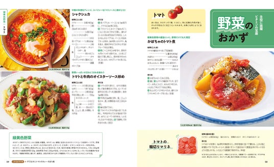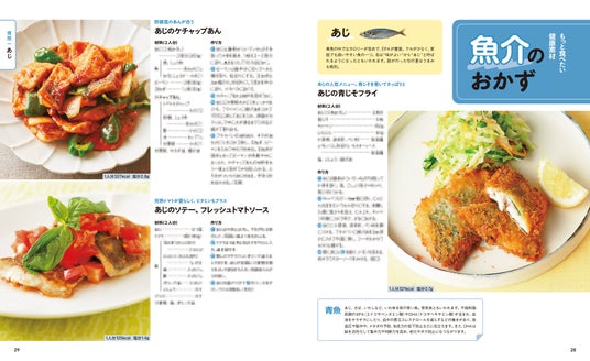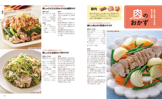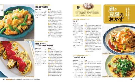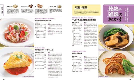 魚介や肉、豆腐、豆類、野菜など、体にいい食材を使った「主菜」(メインになるおかず)のレシピを200品紹介します。レシピは素材別に紹介しているので、使いたい食材でレシピを探しやすくて便利。巻頭特集では、特にたんぱく質がしっかりとれるおかずをピックアップしています。