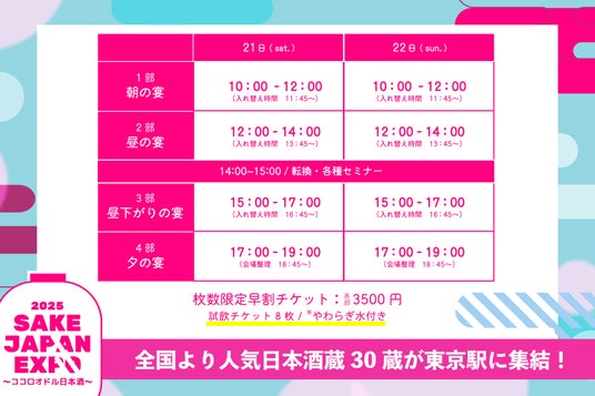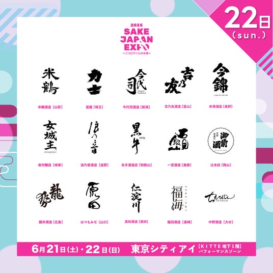 2025年6月21日(土)・22日(日)の2日間、KITTE地下1階・東京シティアイにて開催される日本酒イベント「SAKE JAPAN EXPO 2025 ~ココロオドル日本酒~」の早割チケットが、現在TIGETにて販売中です。