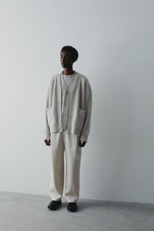 日常を、上質に。静かに、美しく。F.(エフドット)は、トレンドに左右されない、美意識のあるライフスタイルを提案するユニセックスブランドです。削ぎ落とされたミニマルな佇まいの中に、ほんの少しの意外性を仕込んだフォルム。さ柔らかく上質な素材感に包まれた、新しいベーシックのかたちを追求します。カシミアや上質ウール、コットンなどの天然素材に加え、アスリートのために開発された” 機能素材「アドエルム」” も一部のアイテムに採用。素材が持つ温度調整や快適性と、造形としての美しさを共存させています。フォルムは身体と空間の関係を意識し、静かに佇む“余白” をまとったシルエット設計。緊張感と遊びを兼ね備えた柔らかさのあるバランスが、ジェンダーを越えて馴染む美しい構造を形づくります。