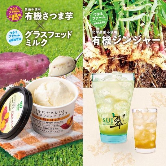 ワタミファームの美幌峠牧場では日本でわずか2%しか行っていない「放牧型酪農」を行っています(冬季は牛舎で飼育)。そこで作られたグラスフェッドミルクと千葉県佐原農場産の有機紅はるかを使った「有機紅はるかのグラスフェッドアイス」を今年もミライザカで販売します。昨年夏に販売し、わずか1週間で24,000個を販売した大人気自然派アイスをぜひ店舗でご賞味ください。