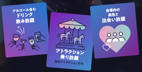 「アトラクション乗り放題」「アルコール含むドリンク飲み放題」「出会い放題」