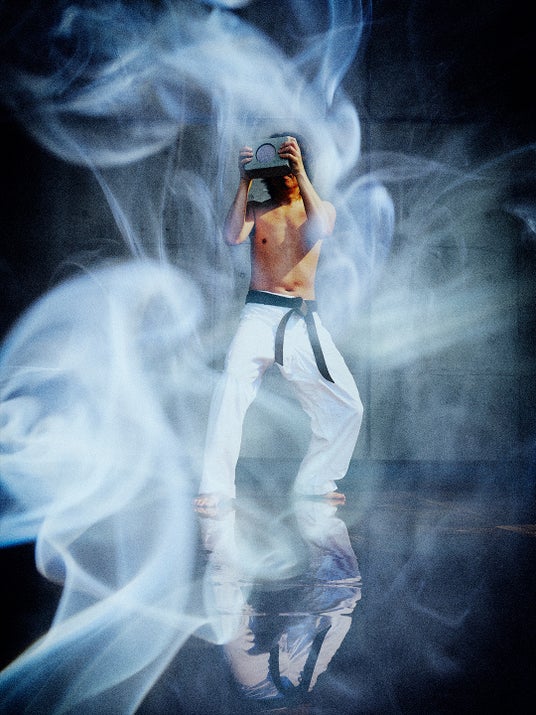 加速し続けるイメージ環境、またそこに進んで身を投じる私たち自身がどうにか正直に生き続けようとする一つの姿である。写真のための筋トレやサーキット会場にあるはずだったフラッグは、かつて明確な目的に結びついていた動作、シンボルである。