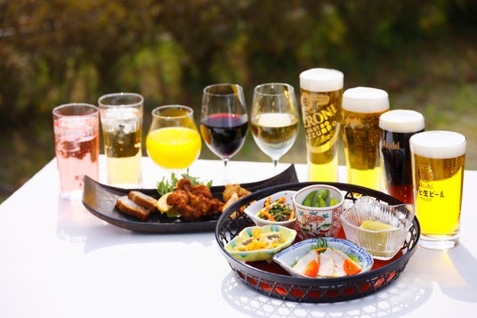 ビアテラスの主役ともいえるビールは、アサヒビールの人気銘柄を取り揃えました。定番の「アサヒスーパードライ」はもちろん、さっぱりとした爽やかな飲み心地で驚くほどキレがよいイタリアンビール「ペローニナストロアズーロ」、ほかにも、アルコールが苦手な方でも、お酒気分をお楽しみいただけるよう、ノンアルコールビールやノンアルコールカクテルをご提供いたします。