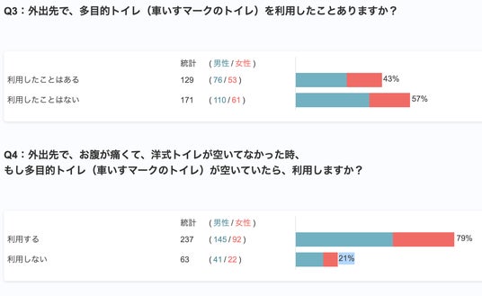 5人に4人、多機能トイレが空いていたら利用する?!外出先で、平均何分くらい「洋式トイレ」を利用?
