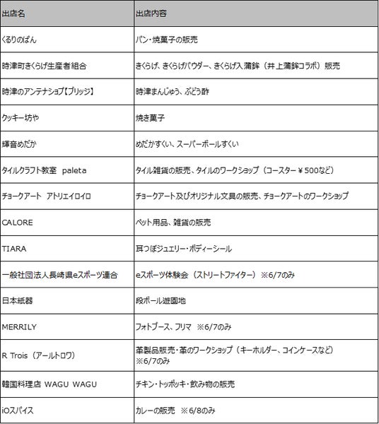 マルシェには、時津町で活躍する選りすぐりの店舗が多数出展予定です。こだわりのグルメやワークショップなど、時津町の魅力が詰まった商品が勢揃いします。家族連れで楽しめる企画も予定しており、老若男女問わず、一日中楽しめるイベントとなっています。