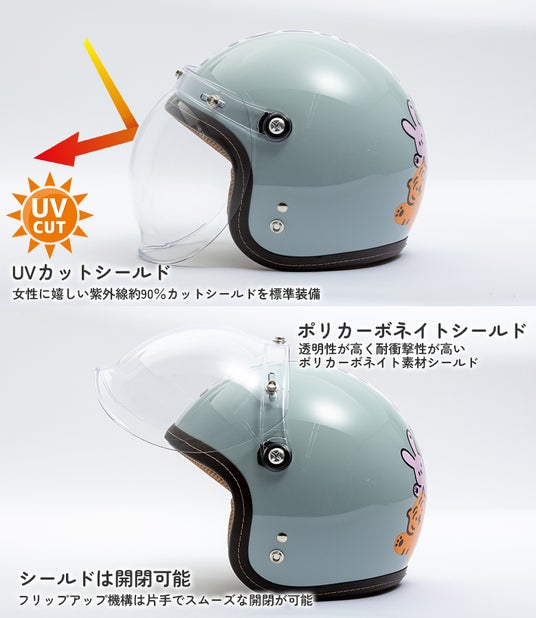標準装備のシールドは紫外線約90%カットシールドを使用。