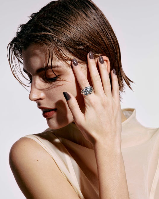 "紐を編む"という意味の名の通り、編み込んだようなディティールを表現したBRAID(ブレイド)シリーズの新作リング。編んだ紐からインスパイアされたデザインは、たっぷりとしたボリュームで存在感のある仕上がりに。