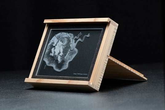 水晶板の表でも裏でもない、水晶板内部へのレーザー彫刻により浮き上がってくるような立体感のある絵画として生まれ変わります。